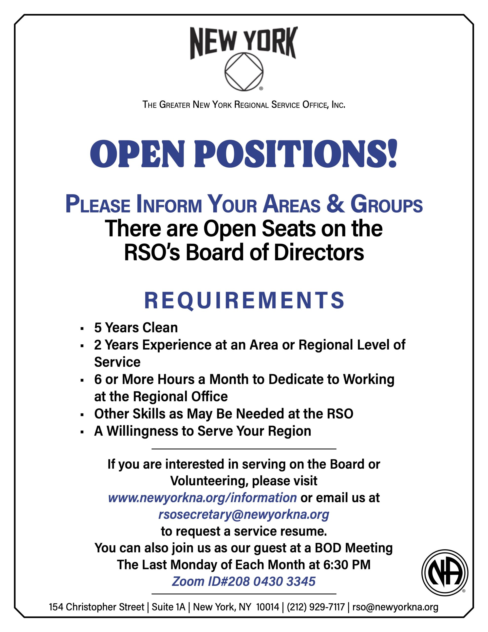 There are open positions. Please get involved with your area!